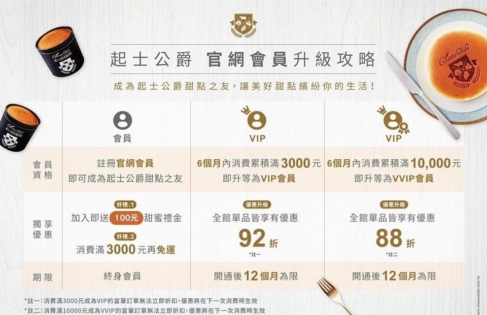 ・購物金為官網限定贈禮,僅限【起士公爵官網會員】於官網結帳時使用,百貨專櫃與門市恕不適用。