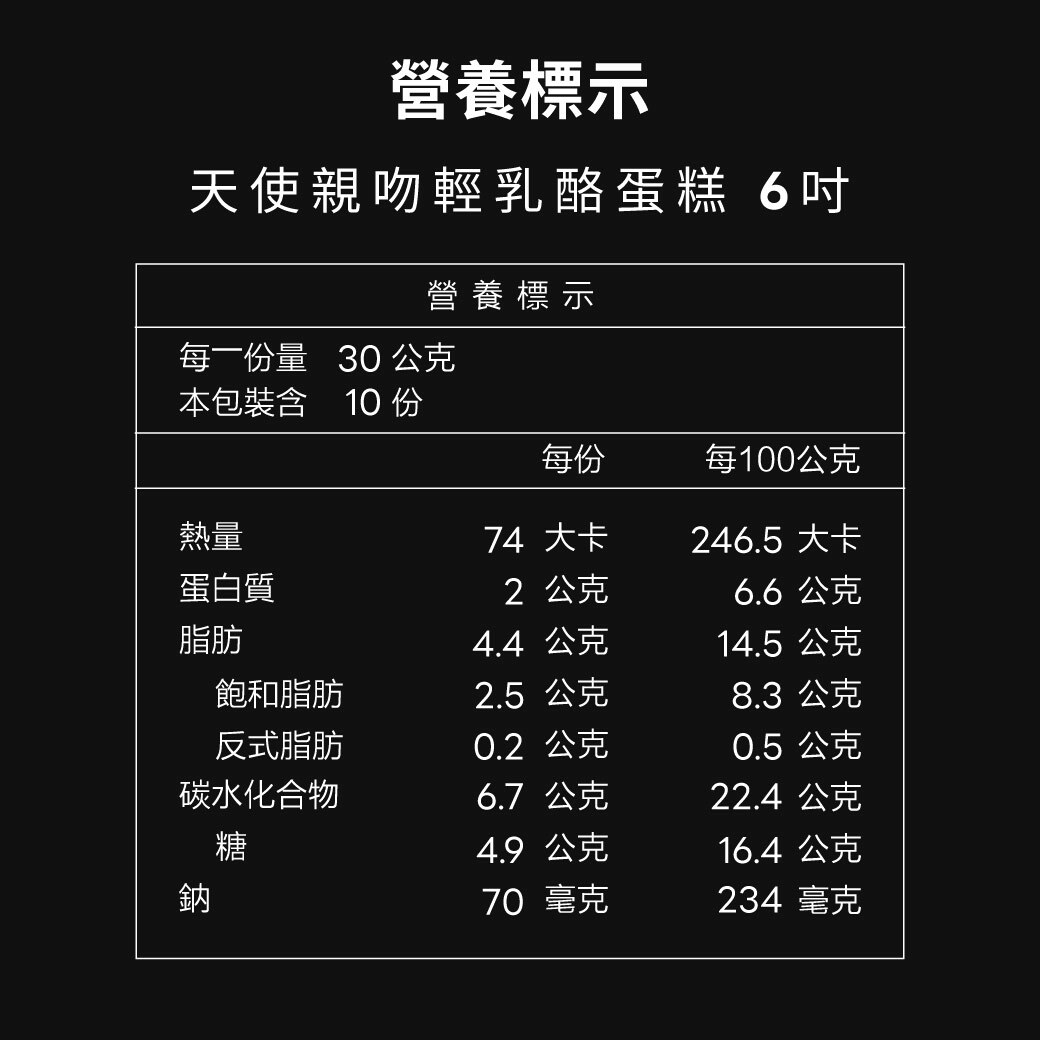 成分:100% 頂級凝脂乳酪、新鮮液蛋、新鮮牛奶、動物性鮮奶油(乳脂)、低筋麵粉、蔗糖、檸檬汁、鹽