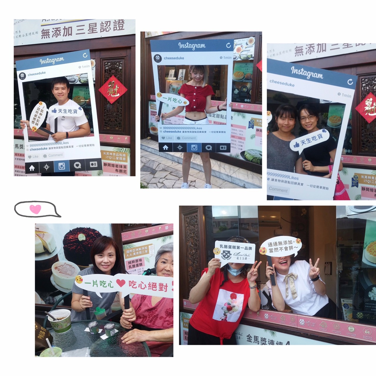 任務一/拿著「我在台中起士公爵!」等小立牌與甜點拍照,讓我們做為起士公爵社群發文使用。