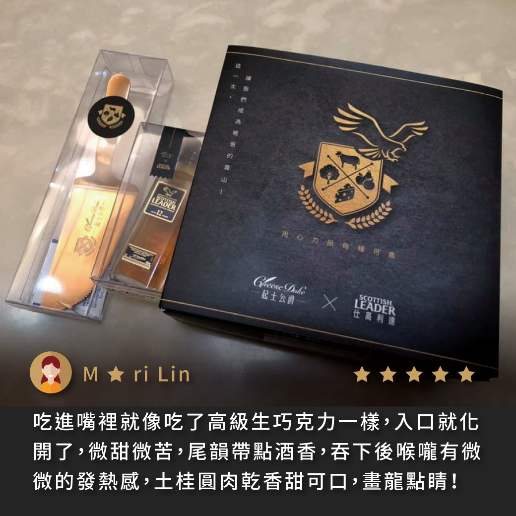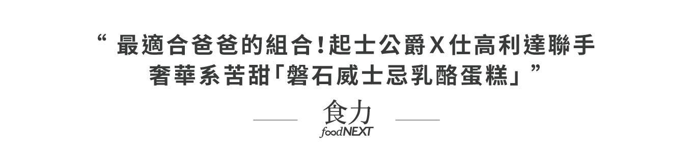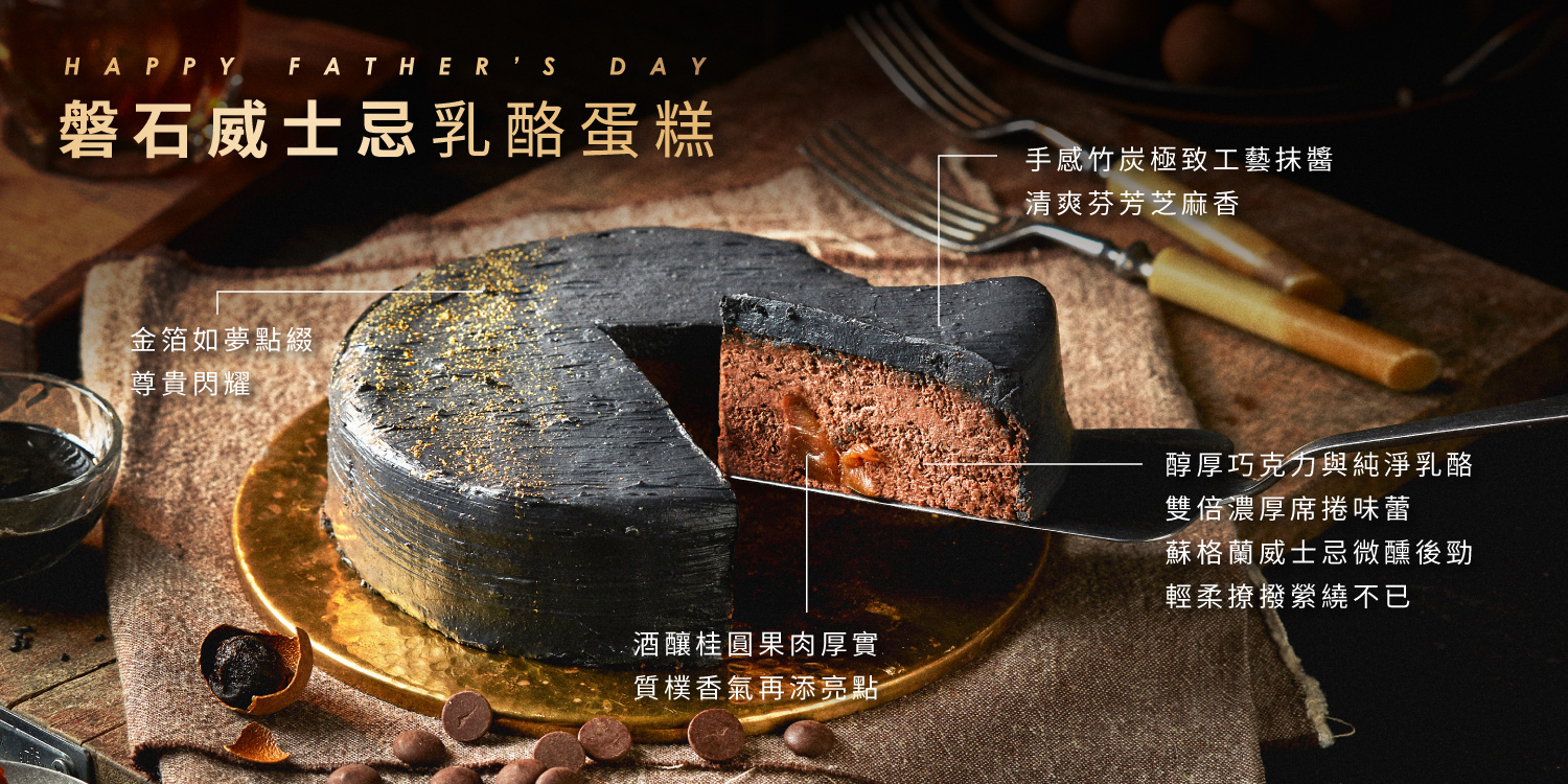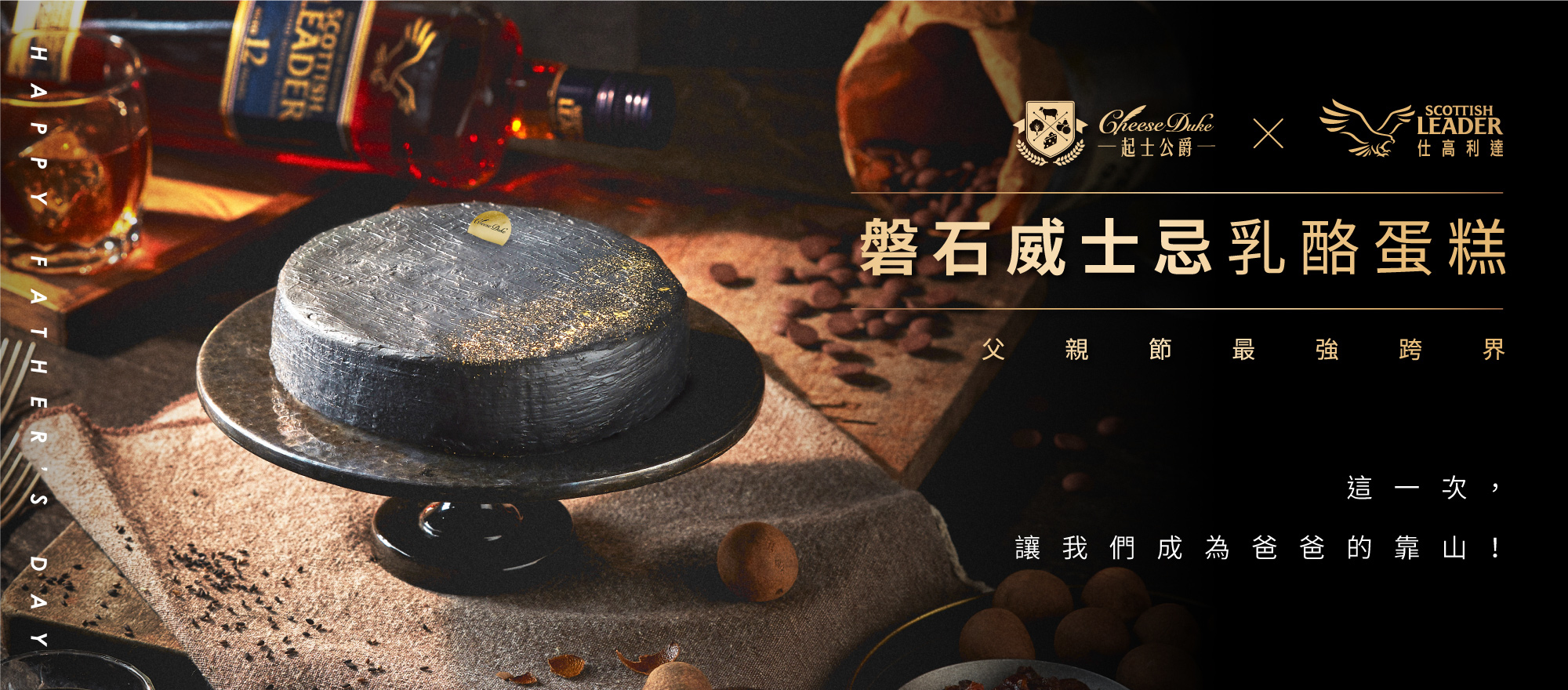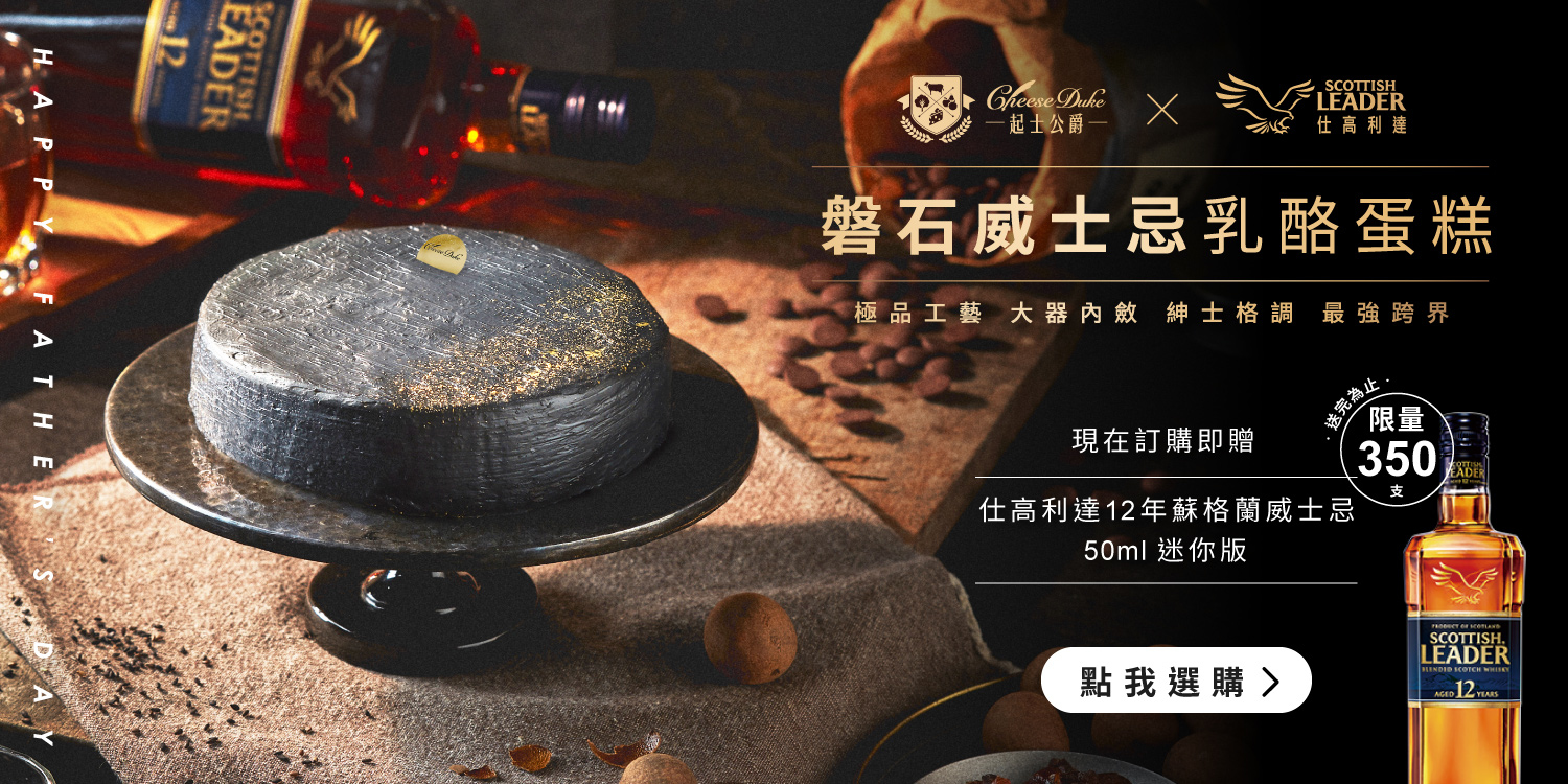 威士忌是男人的獨享時刻,有些苦需要沈澱,有些樂適合一飲而盡;乳酪蛋糕是家裡溫暖的陪伴,柔軟滑順、濃郁香醇。以前,男人認為這是兩個世界,回家必須無所畏懼,苦樂自己吞。今年,起士公爵想告訴爸爸們,威士忌不但可以和乳酪蛋糕加在一起,而且更好吃。