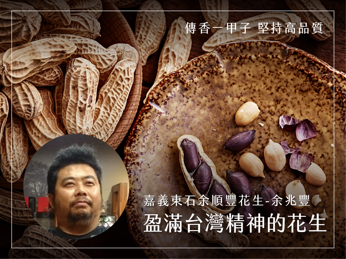 「落花生」象徵著台灣奮鬥不懈的精神與無窮的生命力,而余順豐花生超過一甲子的用心栽培,目前已傳承自第三代,不但承襲了經典的古早風味與穩定品質,也不斷積極創新,突顯東石人不忘本、刻苦耐勞的精神。每一粒花生都是嘉義東石在地最寶貴的禮物,味甘氣香,粒粒順口,顆顆豐碩,將台灣最具代表性之一的農作經典呈現。