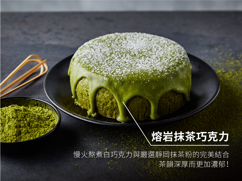 慢火熬煮白巧克力,將可可脂在溫熱下完全釋放後,將嚴選靜岡抹茶粉緩緩倒入其中,兩者完美結合成熔岩抹茶巧克力,茶韻深厚而更加濃郁!