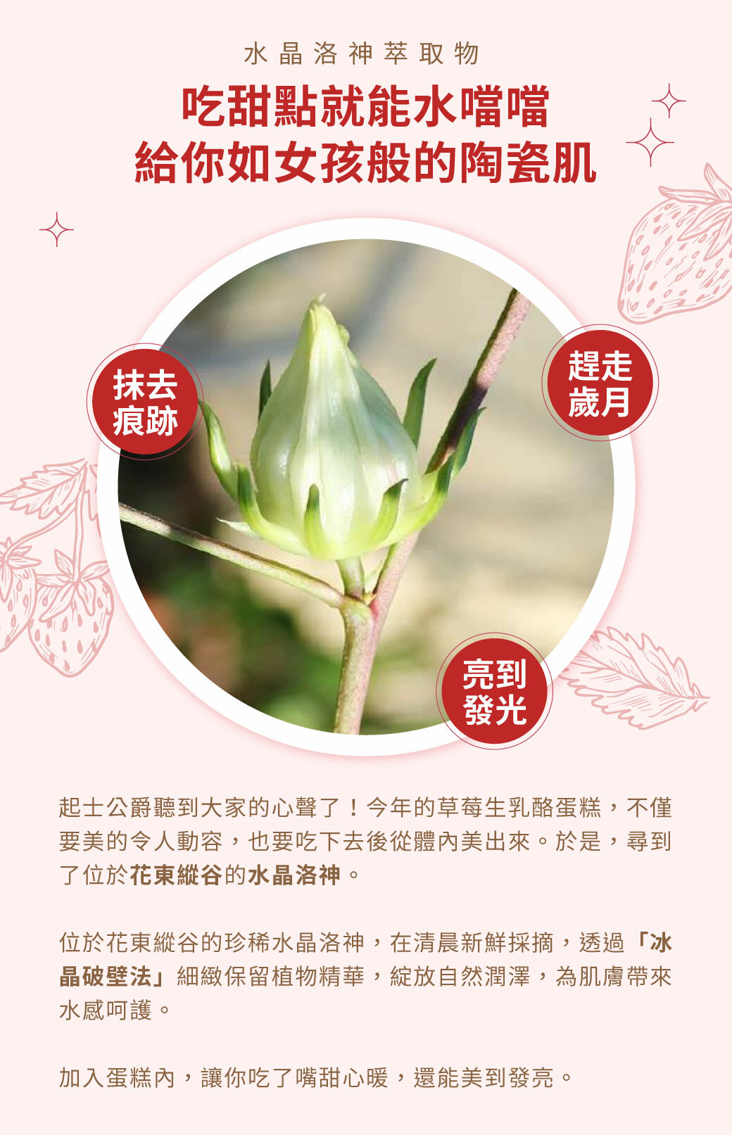 .獨家添加「水晶洛神萃取」,吃甜點也能水噹噹