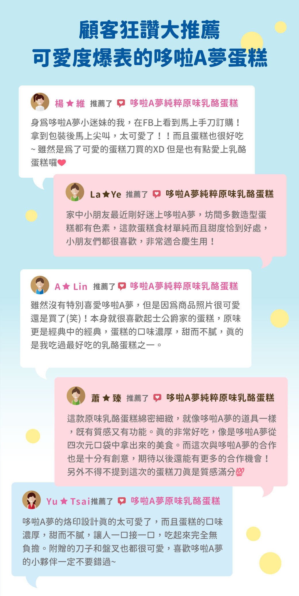 .本商品附刀及盤叉已升級「哆啦A夢 專屬蛋糕刀」、「雲朵盤叉(顏色隨機)」